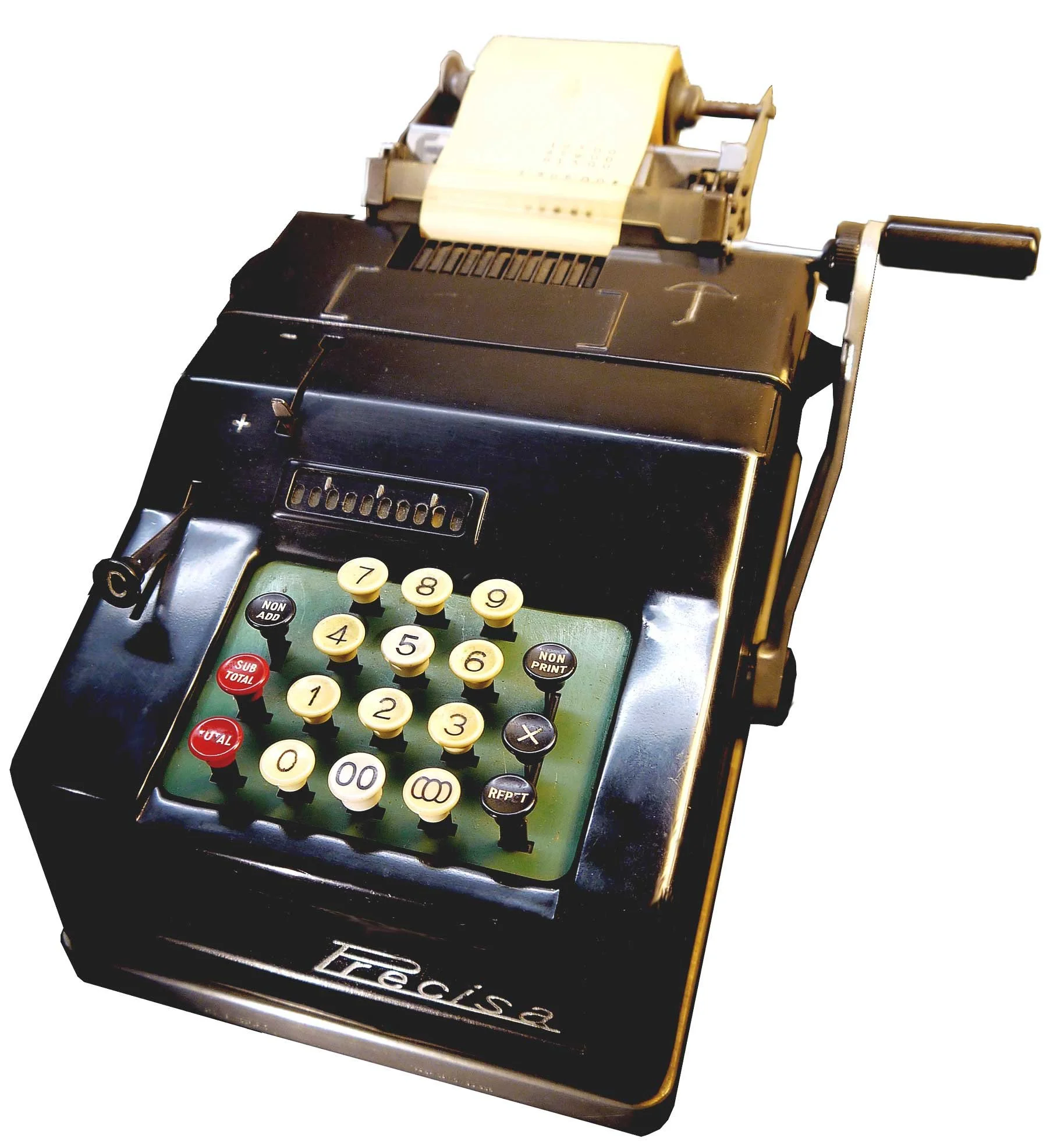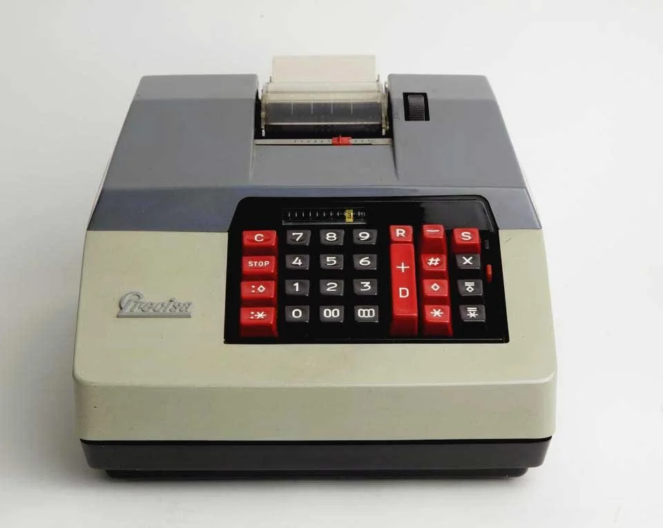 Dieses elektrische Vier-Spezies-Precisamodell ist eine typische Simplexmaschine nach dem Zahnstangen-Prinzip, hat ein vollwertiges Speicherwerk und auch ein Druckwerk.
