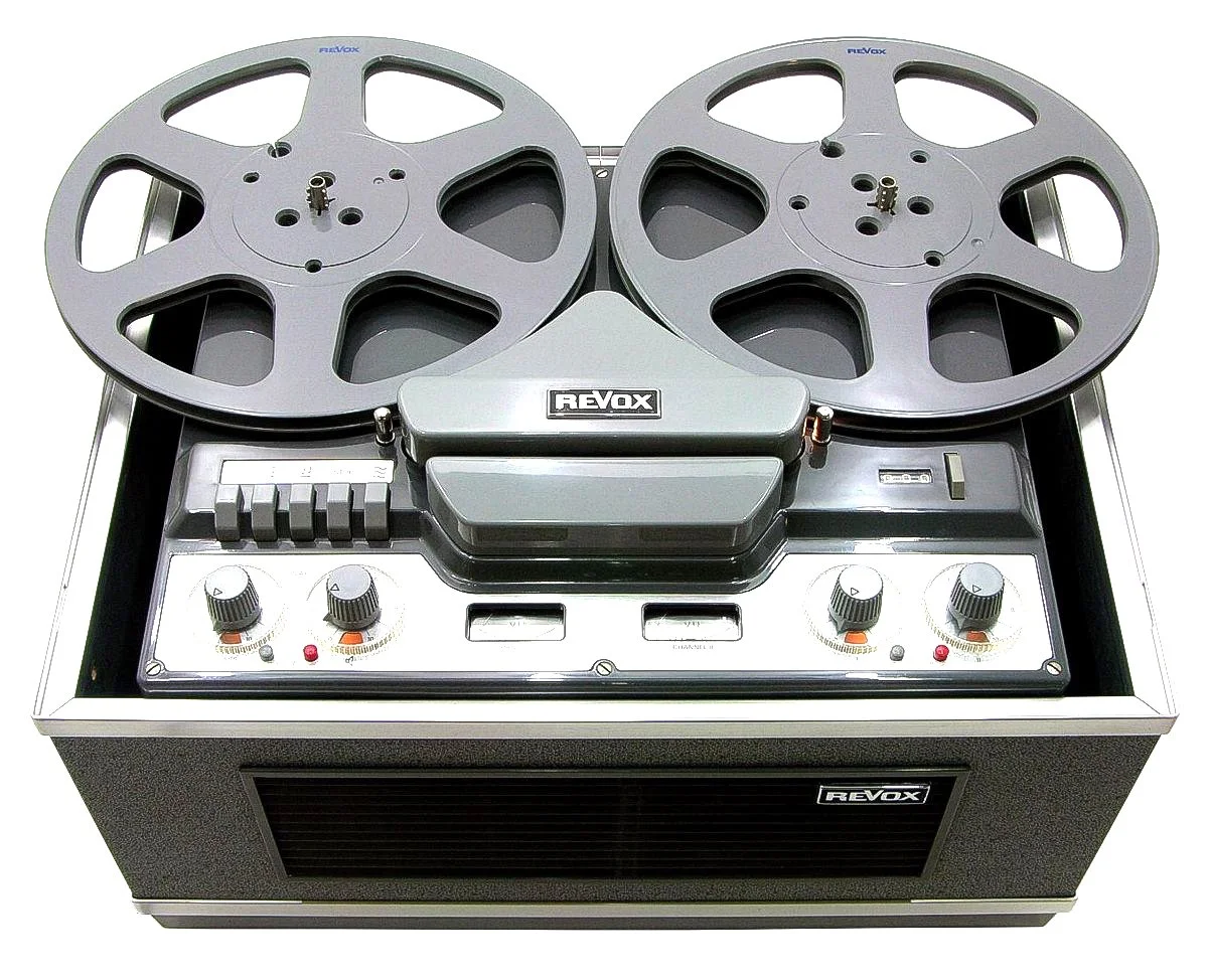 Revox G36, 1962 – Das hochwertige Röhrentonbandgerät Revox G36 konnte mit zwei 26.5 cm Spulen betrieben werde. Es hatte zwei VU-Meter für die Tonaussteuerung und für den Bandantrieb…