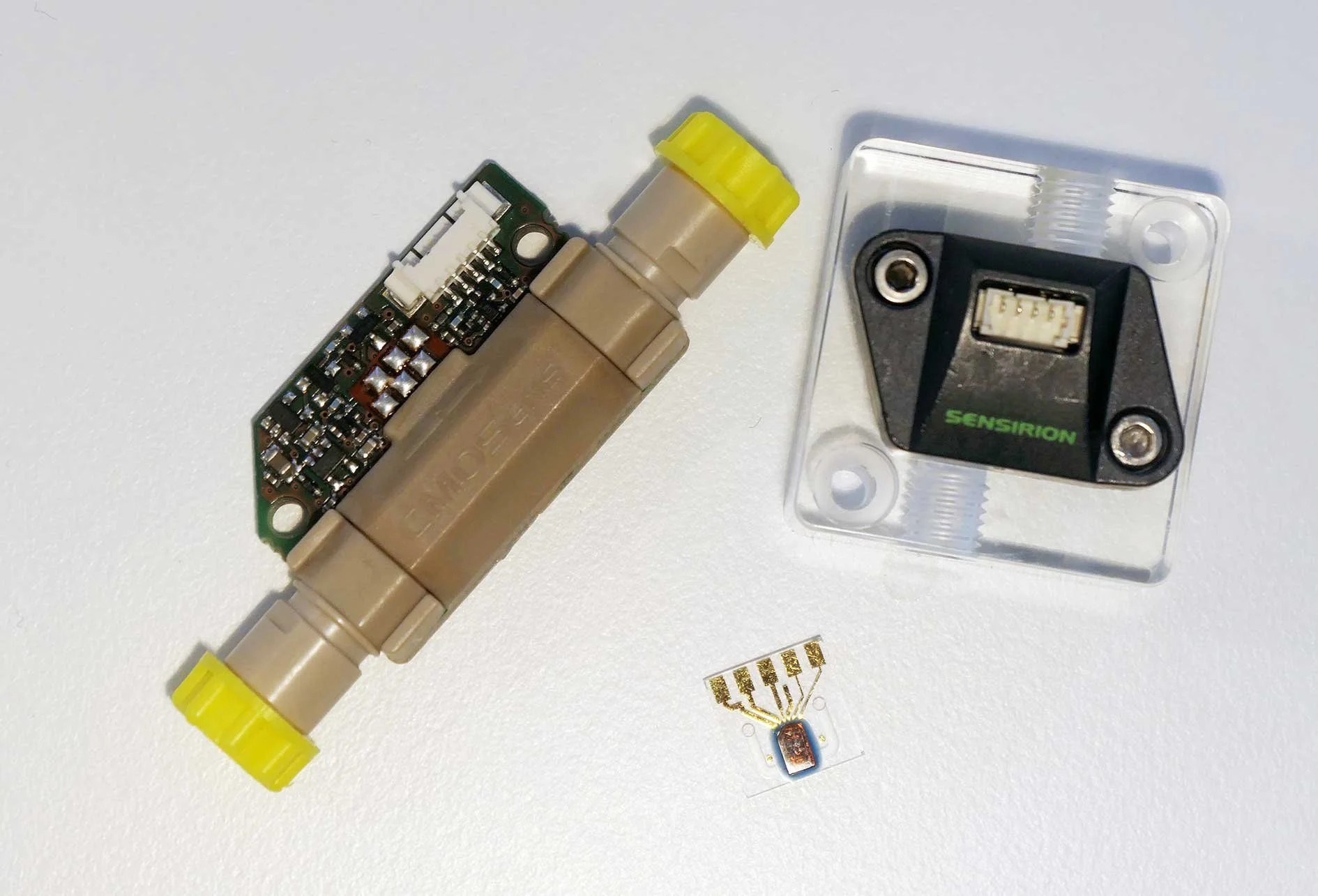 Der grössere analoge Sensor SPD800 basiert auf dem bewährten CMOSens Sensorchip für präzise Luftflussmessungen. Der kleine Sensor SPD3X ist der weltweit kleinste Differenzdrucksensor (Dimension: 5 mm x 8 mm x 5mm).